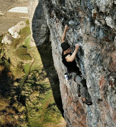 Escarpadas paredes en la vertiente oeste-noroeste con más de 130 vías de hasta 70 m y grados entre el III y el 8a+